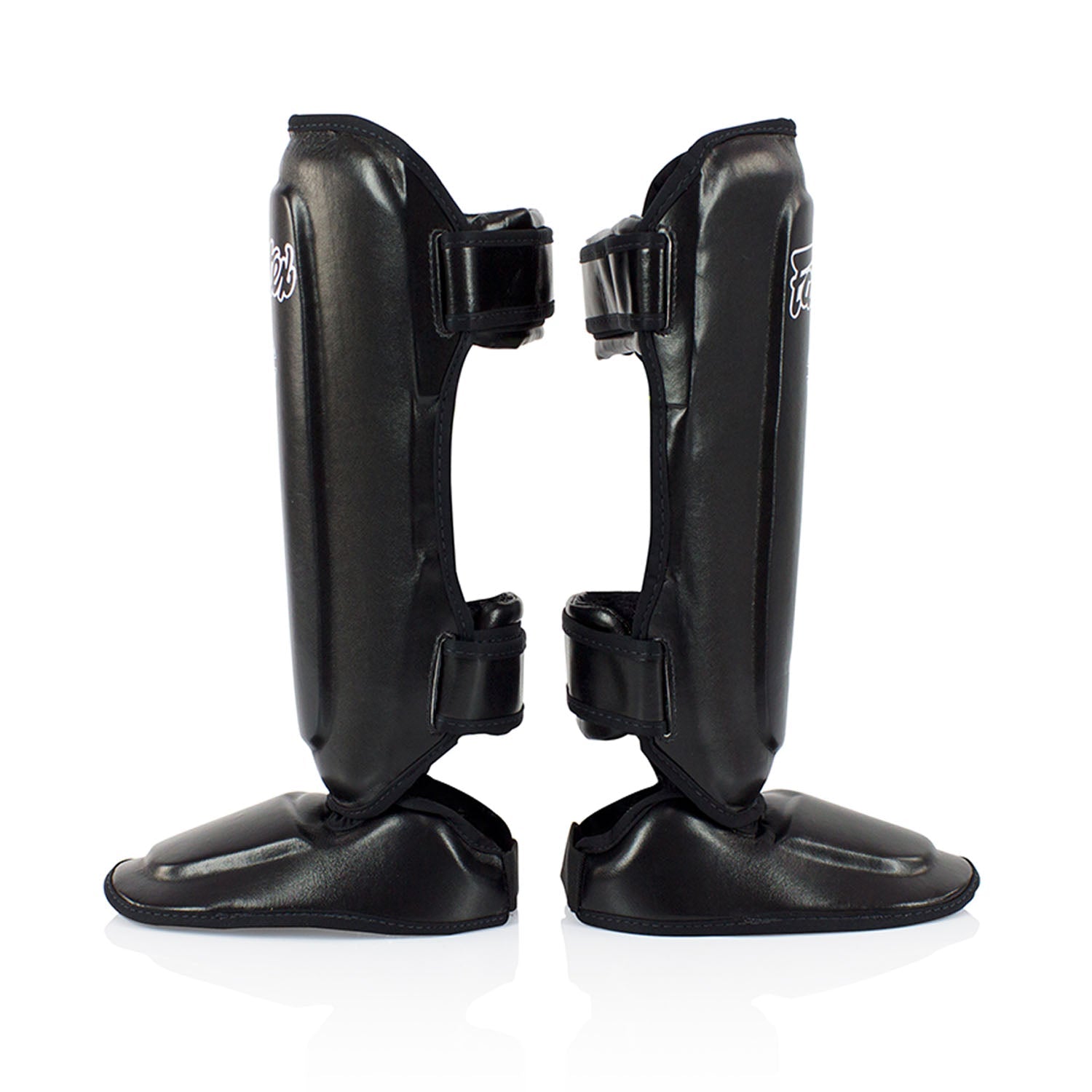 Constructed of Fairtex durable Syntek Leather with extra reinforced padding on the front shin and toe protector for maximum safety.