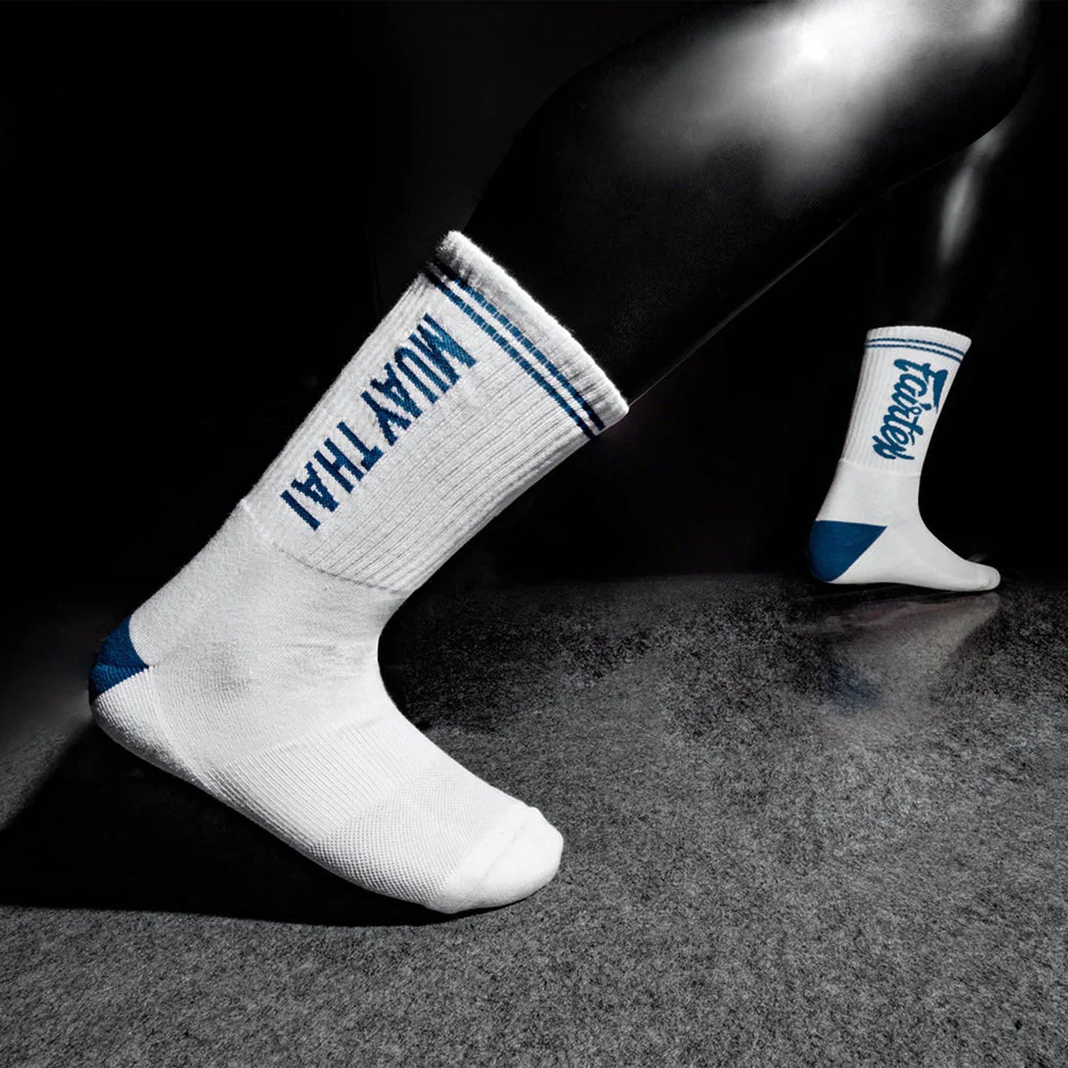 - Unique design with "Fairtex" on one sock and "Muay Thai" on the other