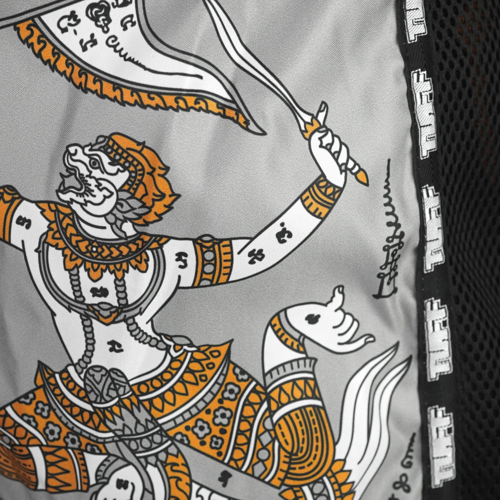 Singha is a Thai mythical creature in the form of a lion. It is regarded as the king of the jungle and is the symbol of power, strength, courage, and leadership. The war flag compliments the characteristics of Singha even more. The shorts reflect the Thai culture wonderfully with the word “Muay Thai” in Thai-style font.