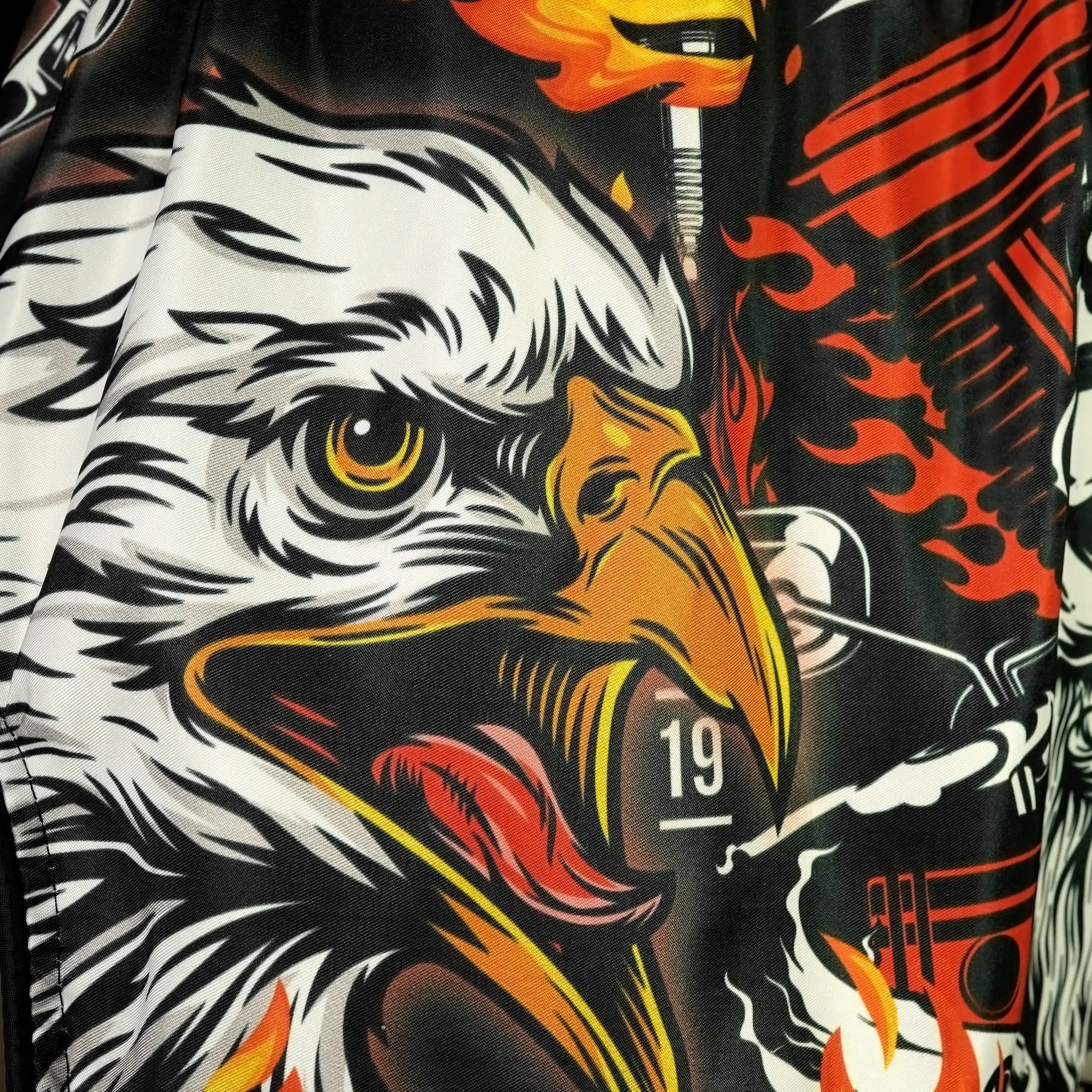 The shorts show a sleek and sturdy design inspired by bikers, focusing primarily on black tones with graphic patterns that represent the essence of the classic American biker culture.