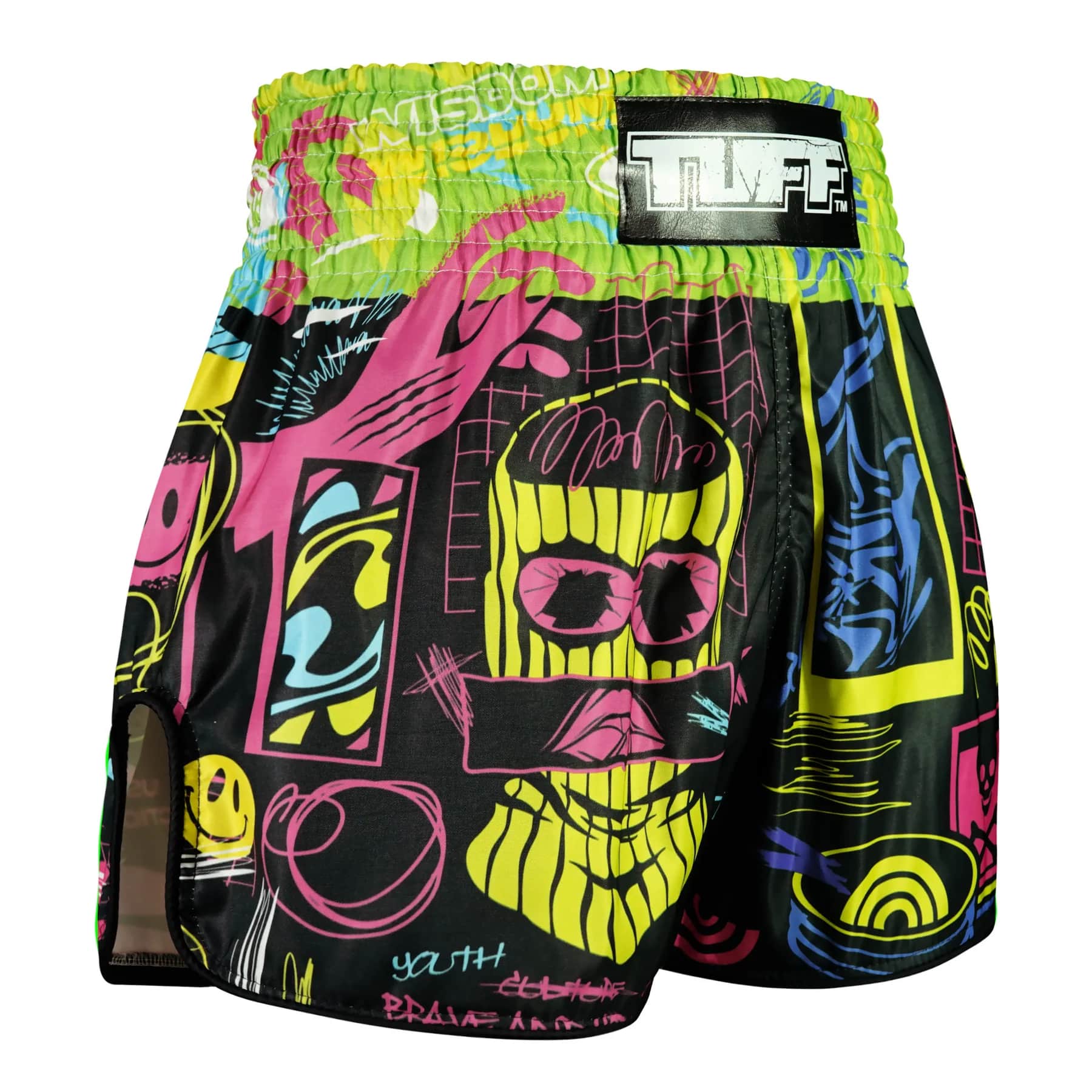 RMS119 TUFF High-Cut Retro Muaythai Shorts Neon Graffiti