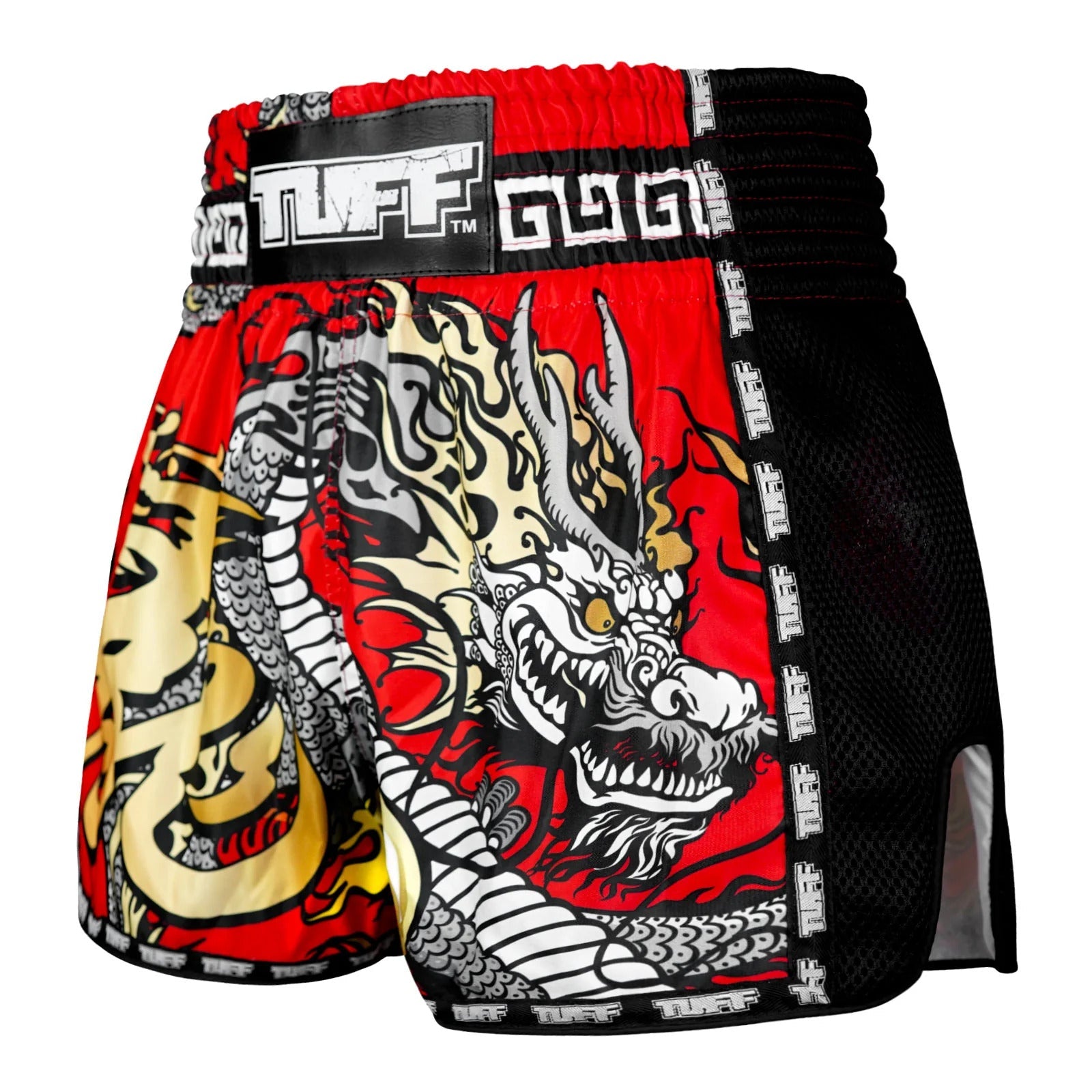 MSC116 TUFF Muaythai Shorts Retro Style Red Chinese Dragon